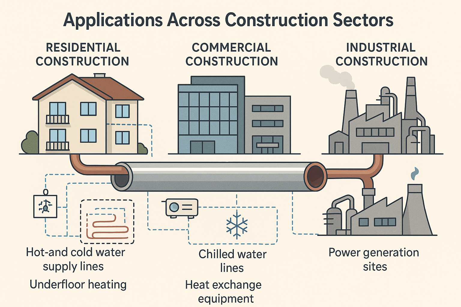 A versatilidade de prata copper tubes torna-os adequados para uma ampla gama de aplicações de construção . Em construção residencial , eles são comumente usados em linhas de abastecimento de água quente e fria , sistemas de aquecimento e redes de aquecimento por piso radiante . A sua durabilidade ajuda a reduzir o risco de fugas e falhas relacionadas com a corrosão, o que é especialmente importante em edifícios residenciais com várias unidades .