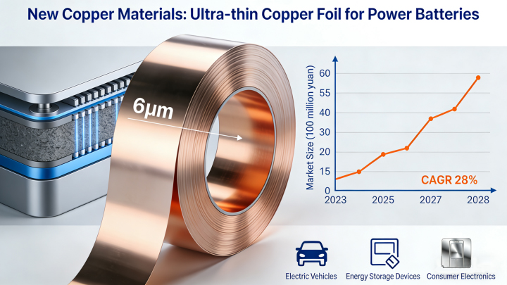 Figura: Avanços em novos materiais de cobre, como folhas de cobre ultrafinas para baterias de energia, estão abrindo novos mercados em crescimento