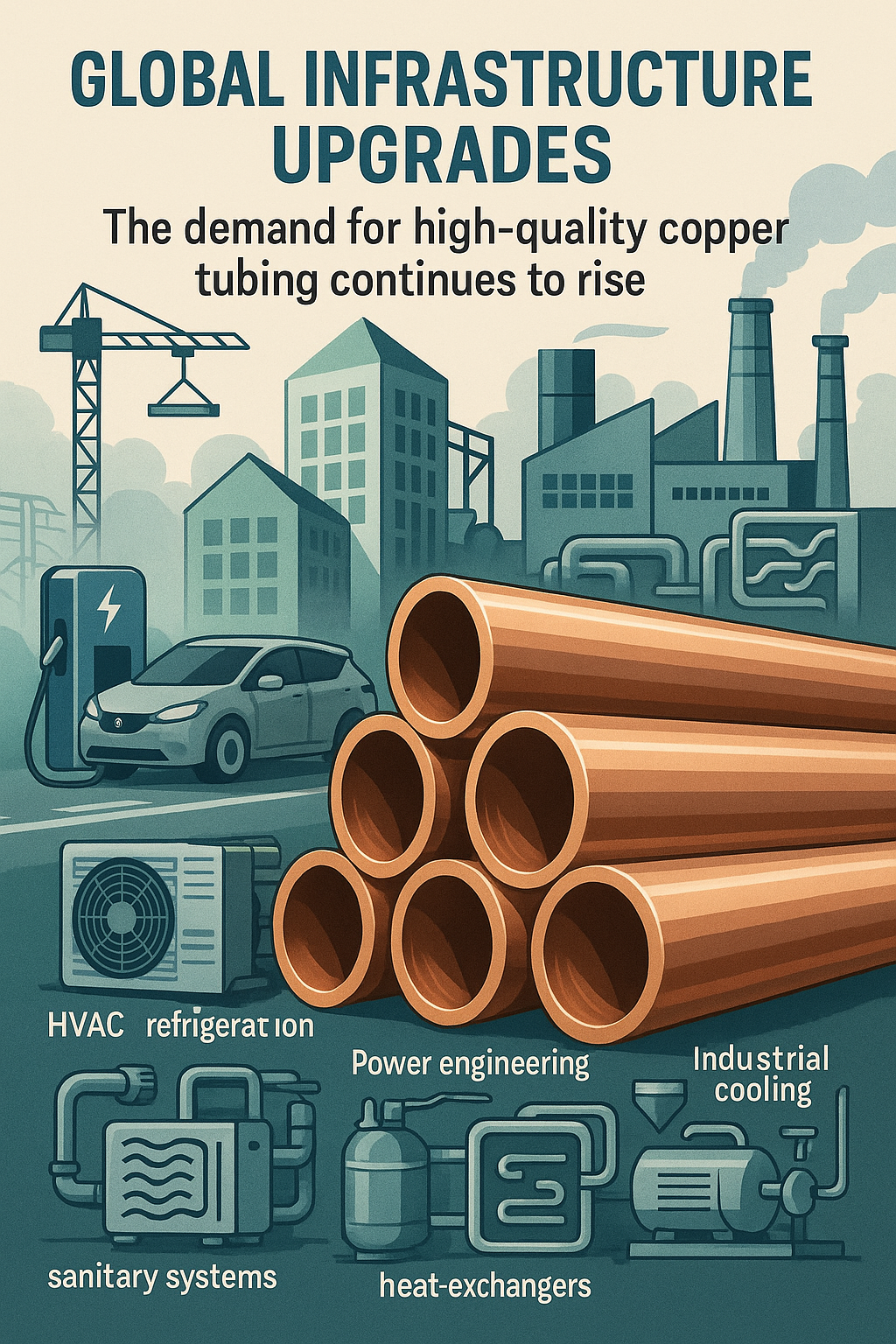 À medida que a infraestrutura global passa por atualizações em grande escala – desde substituições de sistemas HVAC até construção de edifícios com eficiência energética, adoção de bombas de calor, refrigeração industrial e a eletrificação acelerada dos transportes – a procura por tubos de cobre de alta qualidade continua a aumentar. Em HVAC, refrigeração, engenharia de energia, trocadores de calor e sistemas sanitários, os tubos de cobre continuam sendo um dos materiais mais confiáveis graças à sua excelente condutividade térmica , resistência à corrosão , conformabilidade e 100% reciclável .