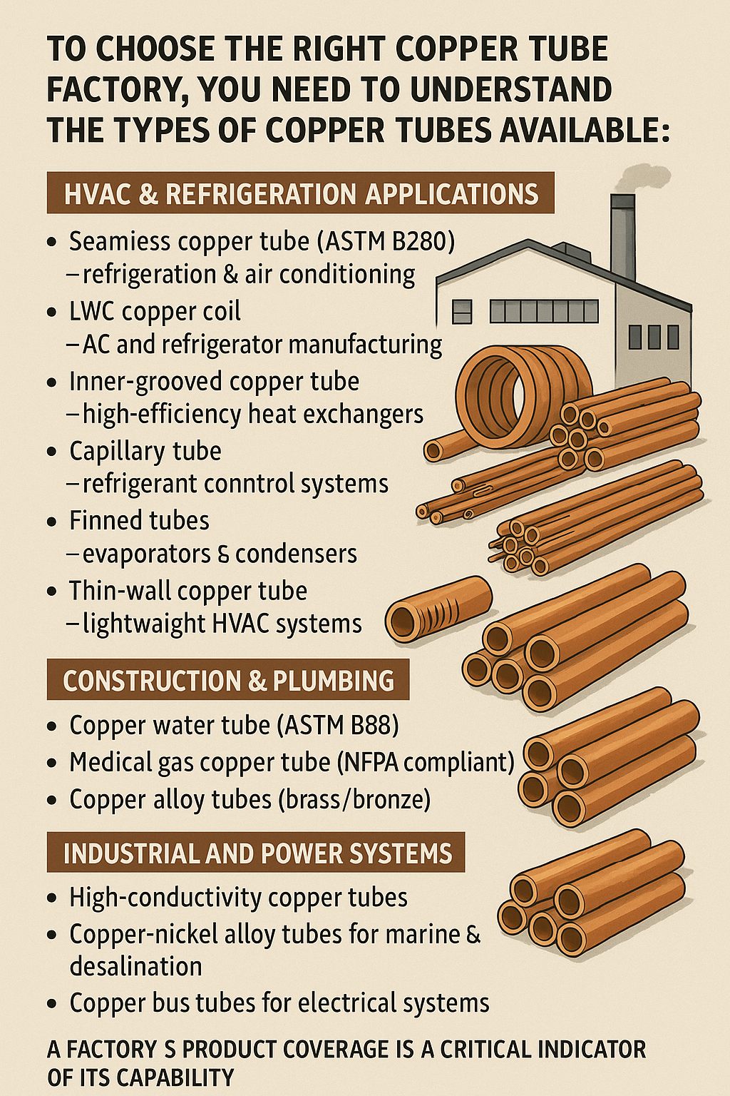 Ao escolher um fornecedor/fábrica parceiro adequado entre vários fabricantes de tubos de cobre, é recomendável focar nas seguintes dimensões: