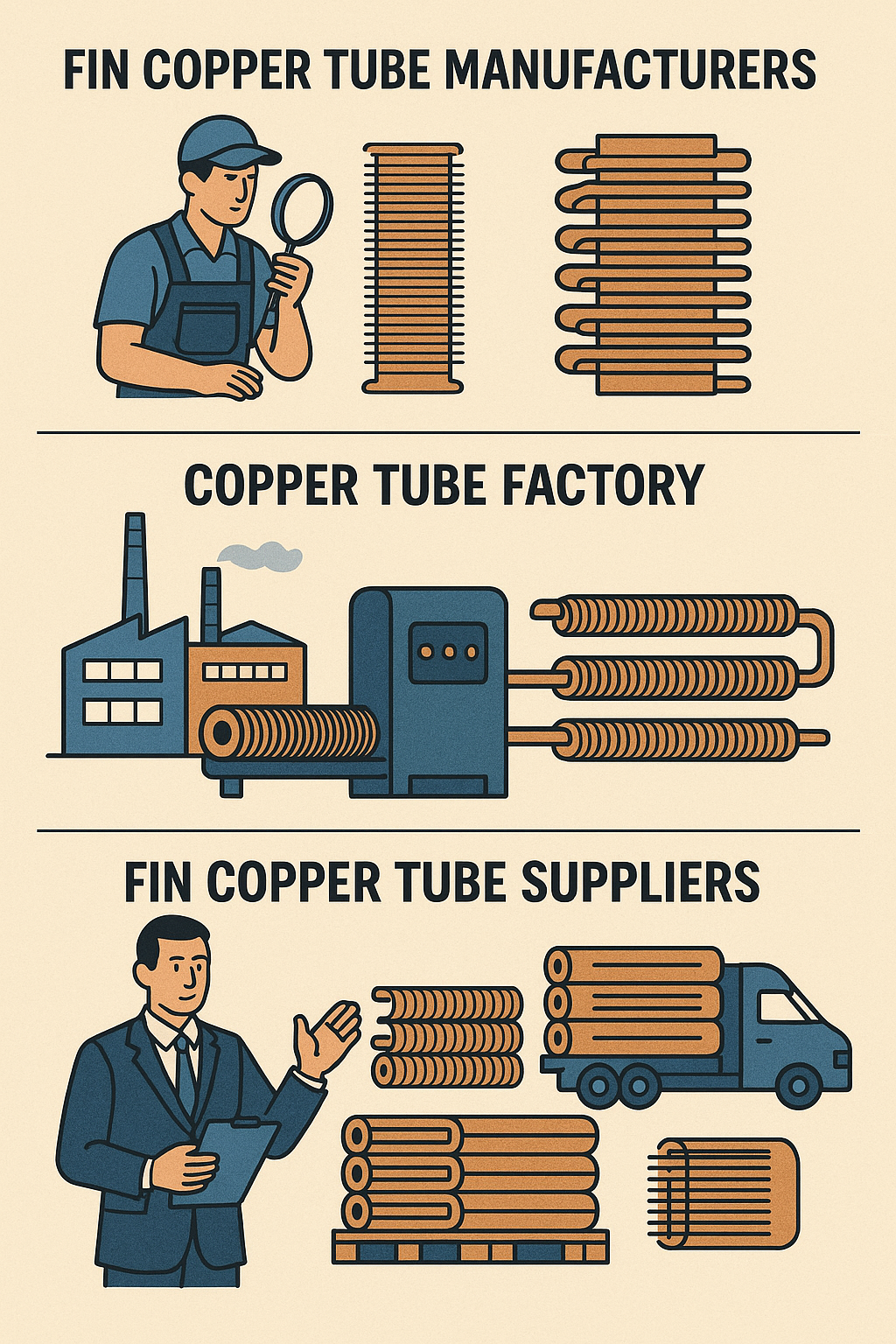 A crescente demanda por tubos de cobre aletados nas indústrias de refrigeração e ar condicionado levou a um aumento no número de Tubo de cobre com aleta Manufacturer and Fábrica de tubos de cobre . Esses fabricantes e fábricas desempenham um papel vital na produção e distribuição de tubos de cobre com aletas.